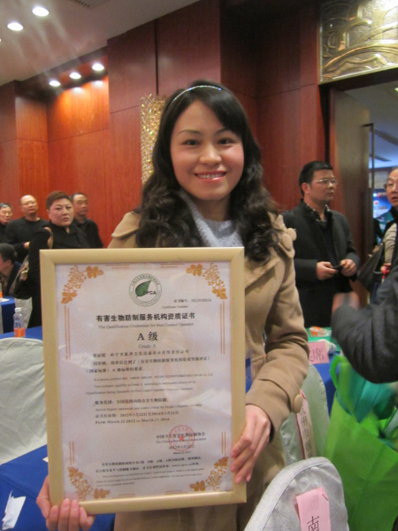 2012年3月21日-24日,中國衛(wèi)生有害生物防制協(xié)會2012年年會暨第四屆三次理事會在六朝古都南京市隆重召開,康凈公司被授予“中國有害生物防制服務(wù)機(jī)構(gòu)資質(zhì)A級證書”。年會是我國有害生物防制行業(yè)界最具規(guī)模與影響力的年度盛會,屆時,全國協(xié)會及會員單位、外國協(xié)會、省市地方協(xié)會(港臺協(xié)會)、愛衛(wèi)系統(tǒng)、疾控系統(tǒng)、科研院校、藥械生產(chǎn)與經(jīng)營企業(yè)、PCO企業(yè)等有關(guān)人士齊聚一堂,本次會議以“除四害與愛國衛(wèi)生運(yùn)動——紀(jì)念愛國衛(wèi)生運(yùn)動開展60周年”為主題,并對2011年通過A級資質(zhì)考評的全國10家PCO公司正式頒發(fā)資質(zhì)證書。圖為(中國衛(wèi)生有害生物防制協(xié)會)秘書長楊華林先生、(歐洲有害生物管理業(yè)協(xié)會)總干事Rob Fryatt 先生作報告,及頒發(fā)證書現(xiàn)場。